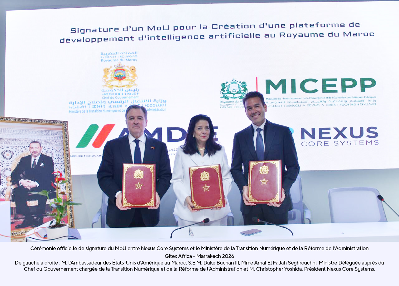 Nexus Core Systems، ووزارة الانتقال الرقمي وإصلاح الإدارة، ووزارة الاستثمار والالتقائية وتقييم السياسات العمومية،
