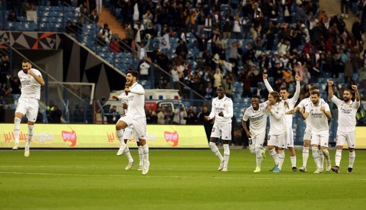 تأهل ريال مدريد إلى نهائي كأس السوبر الاسبانية لكرة القدم بفوزه مساء أمس الاربعاء بركلات الترجيح على فالنسيا ب4-3 بعد انتهاء الوقت الاصلي والشوطين الاضافيين بالتعادل 1-1، على ملعب الملك فهد في العاصمة السعودية الرياض.