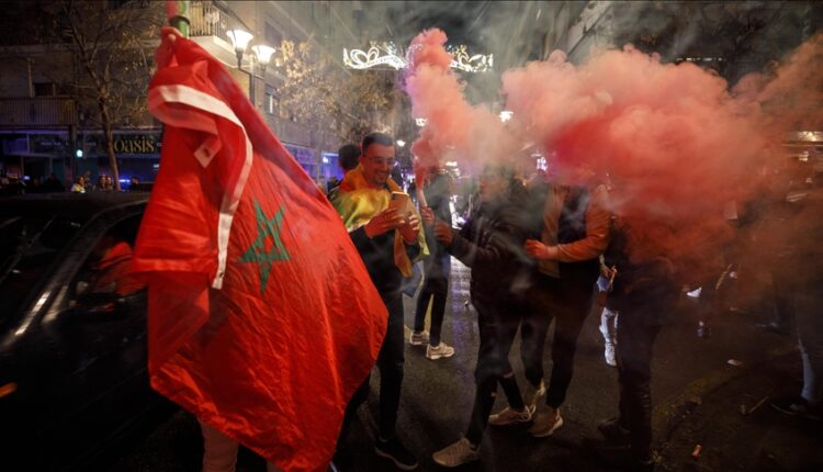 وتخللت مظاهر الفرح، التي تميزت بأغاني تتغنى بالمجد الكروي الذي حققه رجال وليد الركراكي، الاحتفالات العفوية للمغاربة في إسبانيا.