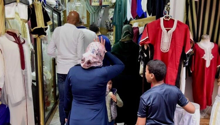 وقبيل أيام من حلول عيد الفطر السعيد، يحج إلى سوق “الثلاثاء” بإنزكان، أعداد الكبيرة من المواطنين، خاصة أمام محلات الخياطة وتصميم الأزياء التقليدية، منهم من يسأل عن مدى جاهزية جلبابه الذي قدمه إلى الخياط قماشا قبل رمضان ومنهم من لم يساعفه الوقت لتصميمه فيقرر الشراء من الجاهز.