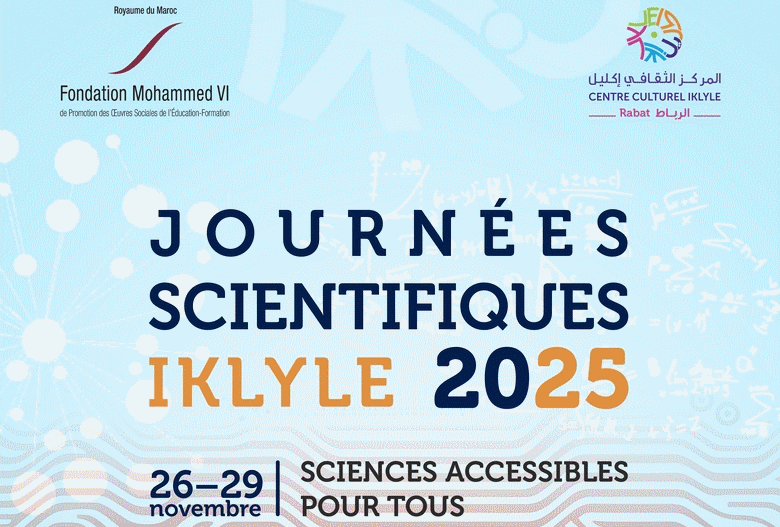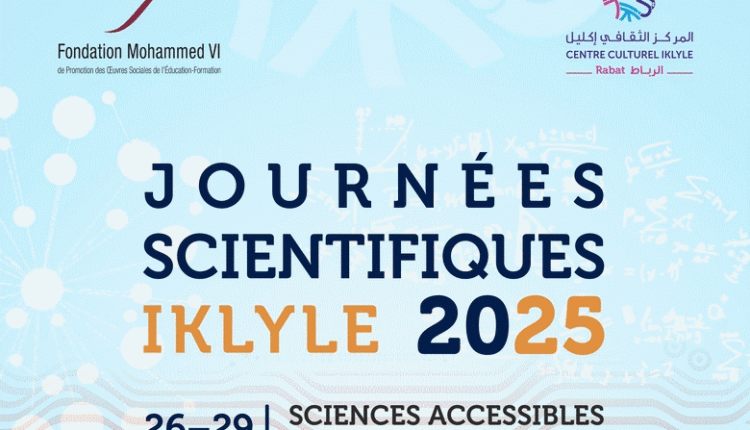 ينظم المركز الثقافي إكليل-الرباط، التابع لمؤسسة محمد السادس للنهوض بالأعمال الاجتماعية للتربية والتكوين، في الفترة ما بين 26 و29 نونبر 2025، الدورة الأولى من “الأيام العلمية إكليل” التي تهدف إلى تبسيط العلوم ونشرها لدى الجمهور العام.