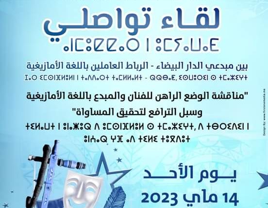 ويتخذ اللقاء موضوعا له “مناقشة الوضع الراهن للفنان والمبدع باللغة الأمازيغية وسبل الترافع لتحقيق المساواة”.
