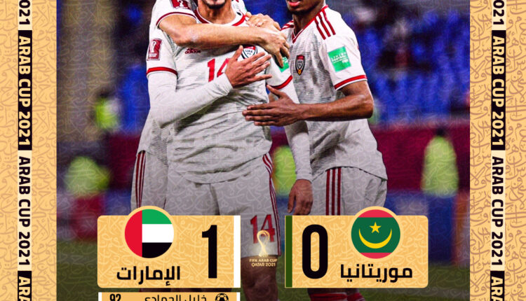 حقق المنتخب الإماراتي، أمس الجمعة، الفوز في الوقت المحتسب بدلا من الضائع على نظيره الموريتاني بهدف لصفر، ضمن منافسات الجولة الثانية بالمجموعة الثانية بكأس العرب.