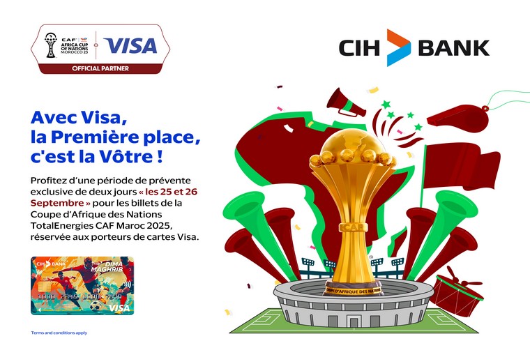 تطلق CIH BANK بطاقة حصرية “بطاقة DIMA MAGHRIB”، وذلك بمناسبة كأس الأمم الإفريقية TOTAL ENERGIES 2025، التي يحظى المغرب بشرف استضافتها.