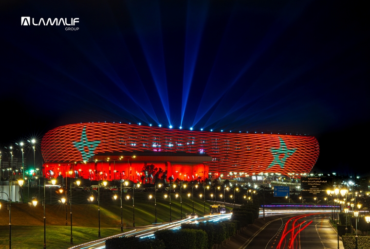 أمنت مجموعة (لام ألف)، الفاعل البارز في مجال الإضاءة الحضرية والمعمارية بالمغرب، إضاءة ملعب الأمير مولاي عبد الله.